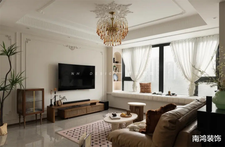 在法式、复古风格的家居设计中,电视背景墙往往通过精致的线条来打造仪式感。