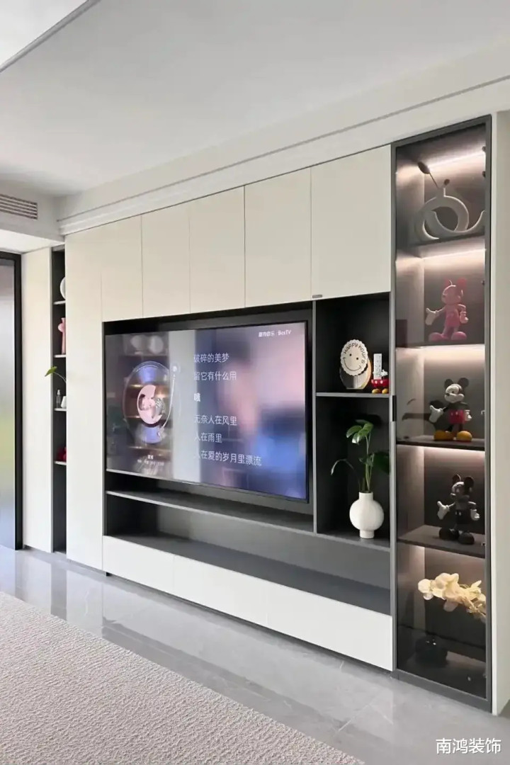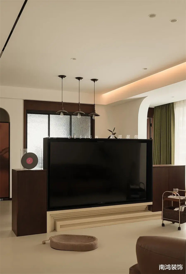 而对于横厅户型,半墙隔断式电视墙也是一种常见选择。