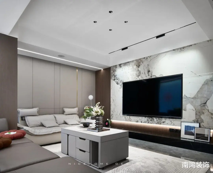 不少业主在规划客厅时,仍会为电视保留一席之地——这也让电视背景墙,自然地成为了客厅这块区域的视觉焦点。