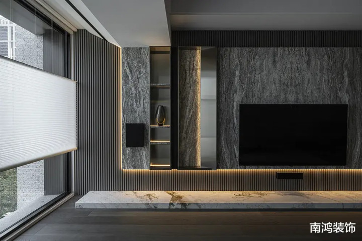 追求最精简干练的视觉效果,咱们不妨用极简型电视背景墙。